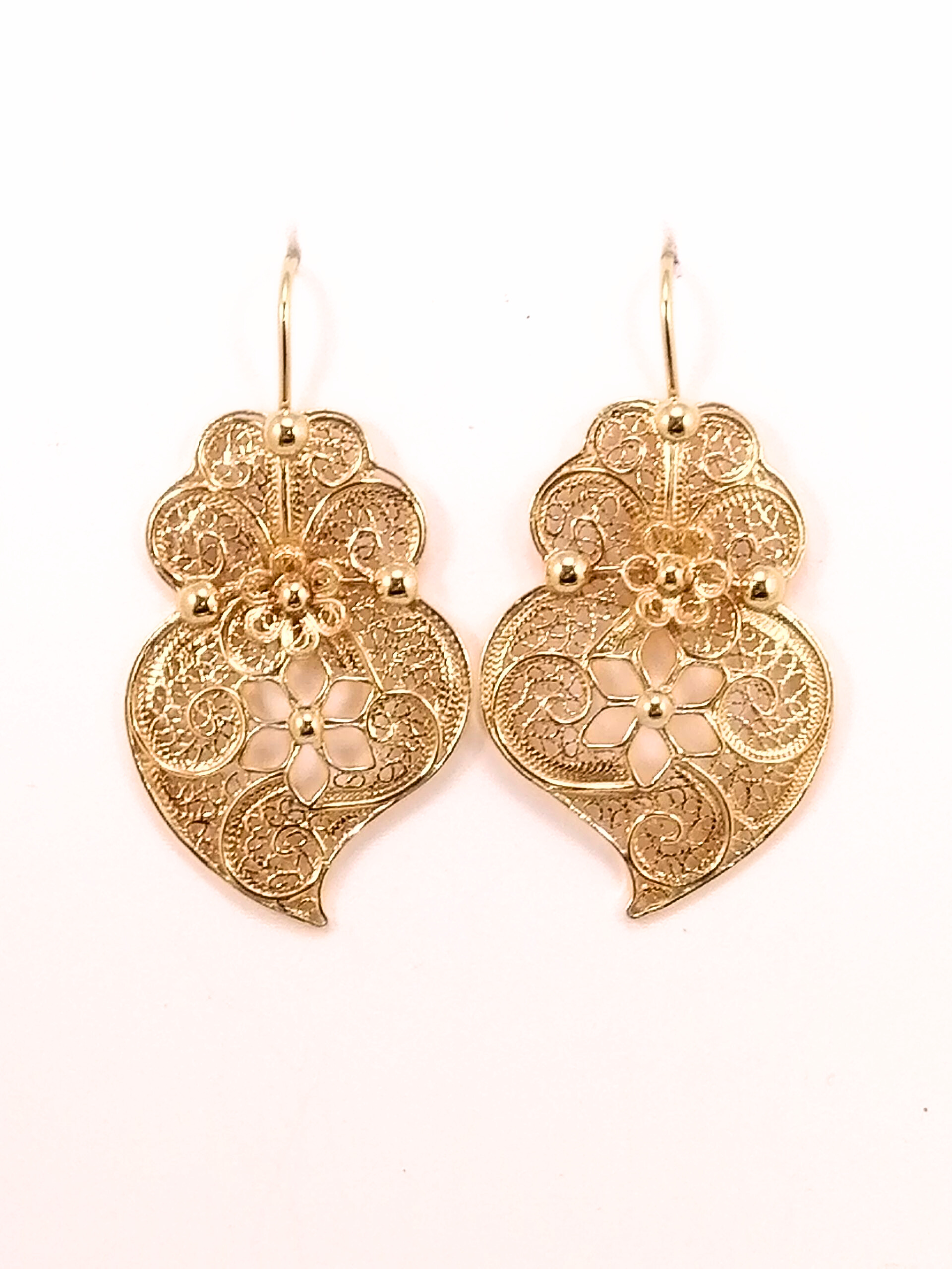 Brinco convencional que releva uma flor no seu design.